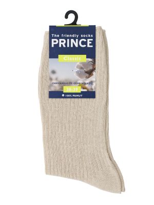 A PRINCE Classic zoknikat a természetes, bőrbarát anyagok kedvelőinek figyelmébe ajánljuk. Ezen termékcsaládunk 100% pamutból – műszálak felhasználása nélkül - készült, így köszönhetően a zoknik jó nedvszívó és légáteresztő képességének viselésük igen kellemes. Kötésük során kizárólag hosszú szálú, fésült pamutot használunk fel, hogy - amennyire lehet - ne csupán természetes, de sokáig hordható végeredményt kapjunk.